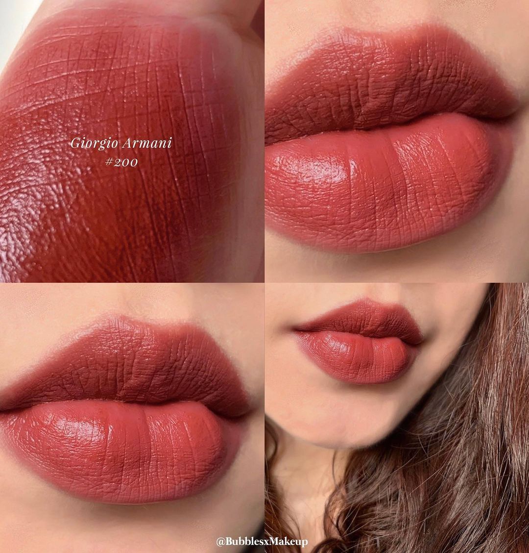 Dòng son Lip Maestro này đã ra mắt từ rất lâu nhưng vẫn được các tín đồ làm đẹp săn đón nồng nhiệt từ năm này sang năm khác, trong đó cây son nổi bật hàng đầu chính là Lip Maestro màu 200. Cây son này mang tông hồng nâu pha đỏ và còn có chút ánh tím, được đánh giá là độc đáo, sang trọng và hợp với mọi tông da. Nhất là đối với những nàng da ngăm, màu son của cây Lip Maestro 200 sẽ còn hợp cạ hơn nữa với làn da quyến rũ, tăng thêm vẻ tây tây hút hồn cho chủ nhân. Cây son này có thành phần dưỡng nên lúc mới tô lên môi sẽ hơi bóng nhẹ, lâu dần mới chuyển thành lớp son mịn mượt như nhung; thế nhưng dù ở trạng thái nào, cây son của Giorgio Armani cũng sẽ đảm bảo độ trau chuốt cho làn môi, và luôn tạo cảm giác mềm mại, thoải mái.