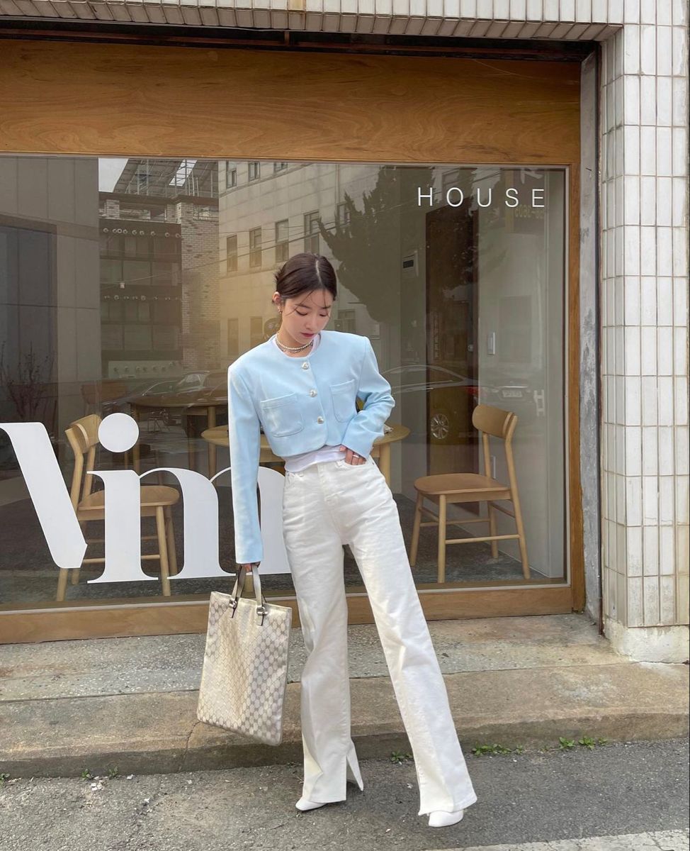 Xanh dương baby là màu sắc có khả năng ăn gian tuổi tác vô cùng hiệu quả. Thời gian trở lại đây, tông màu này ngày một thịnh hành và là lựa chọn hàng đầu của các tín đồ đam mê thời trang. Một số màu sắc được coi là ''cạ cứng'' của xanh baby phải kể đến như: trắng, be hay đen. Không cần quá nhiều váy áo cầu kỳ, bạn chị cần lựa chọn 1 món đồ màu xanh baby phối với các tông màu trên là đã có ngay một bộ đồ thanh lịch, nền nã chuẩn ''vibe'' mùa thu rồi.