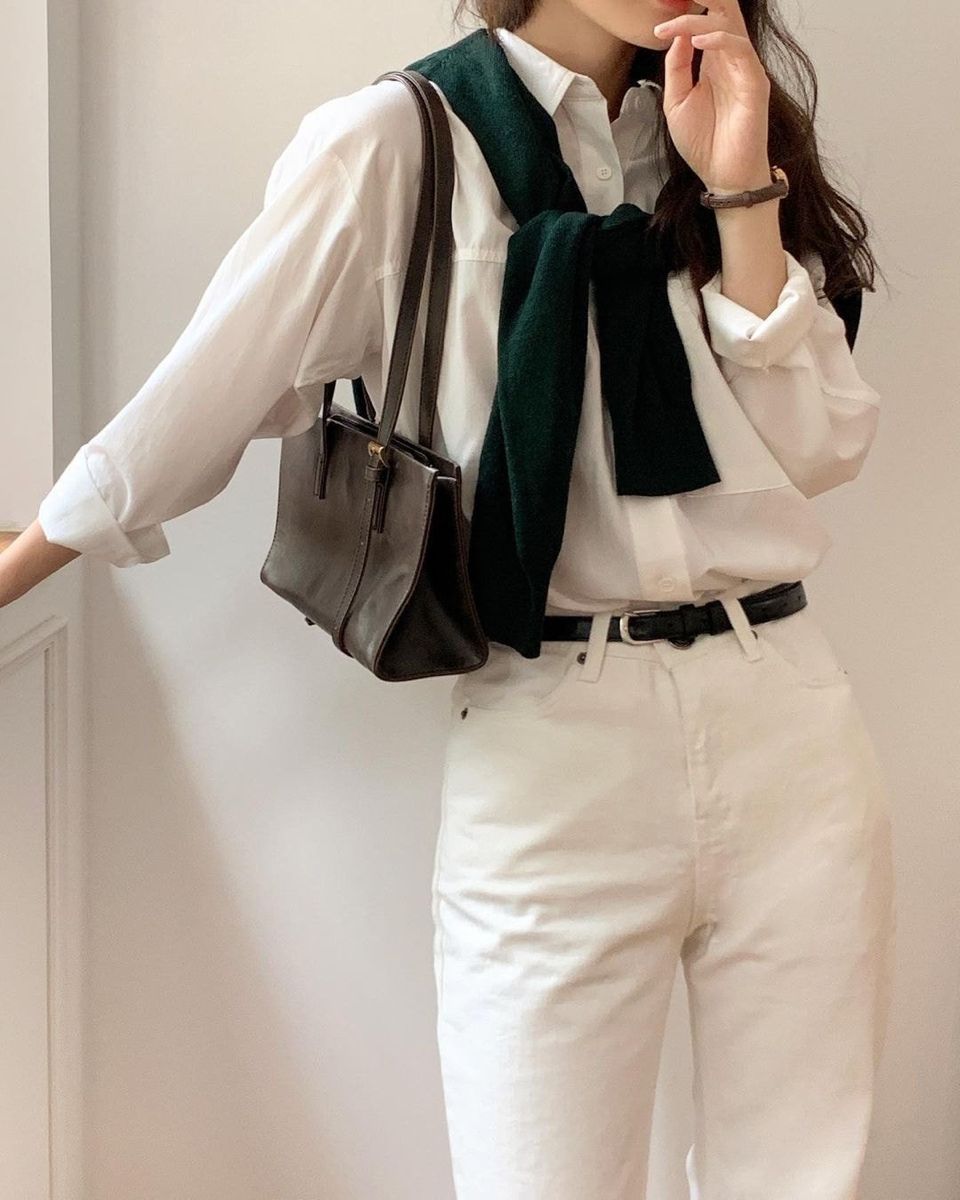 Màu xanh lá thường được lựa chọn để tạo điểm nhấn cho trang phục màu trắng giúp làm nổi bật vẻ tinh khiết, phóng khoáng và tự do trong phong cách của người mặc. Nếu muốn outfit ngày thu thêm ấn tượng, bạn nhất định phải thử nghiệm cách phối màu thú vị này.