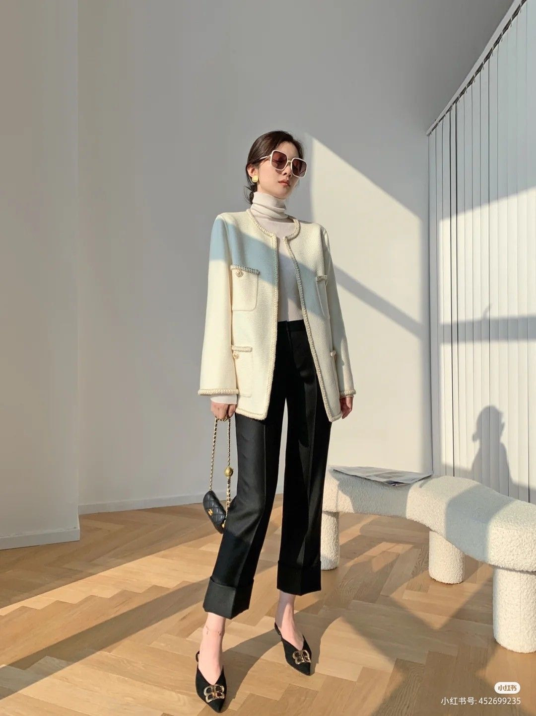 Trắng - be là bộ đôi màu sắc trung tính vô cùng thịnh hành vào mùa lạnh. Không cần quá am hiểu thời trang bạn vẫn có thể mặc đẹp và ấn tượng khi kết hợp những món đồ mang 2 tông màu nhã nhặn này. Điểm chung của bộ đôi bài trùng này là đều mang lại cảm giác nhẹ nhàng, nữ tính cho người mặc. Bạn có thể kết hợp áo trắng với quần be hoặc một bộ đồ tông trắng được điểm xuyết bằng những món phụ kiện màu be xinh xắn. Bộ đôi này chắc chắn sẽ khiến vẻ ngoài của bạn trở nên sáng sủa, trẻ trung, đồng thời giúp tông da thêm trắng sáng và rạng rỡ hơn.