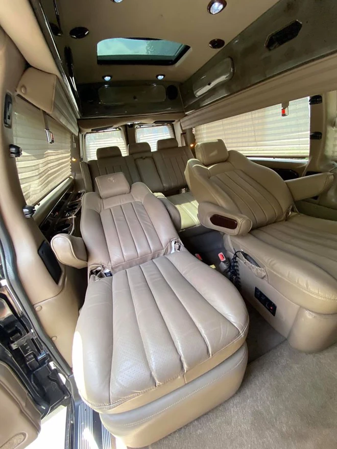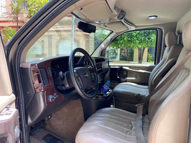 Tuy đã sử dụng được một thời gian khá dài, nhưng khoang nội thất của chiếc GMC Savana Explorer Limited SE vẫn cho thấy được sự ổn định và chất lượng mà người dùng cần có. Chiếc xe thuộc phiên bản 7 chỗ ngồi với khoang hành khách 5 chỗ được ngăn cách riêng biệt với khoang lái.
