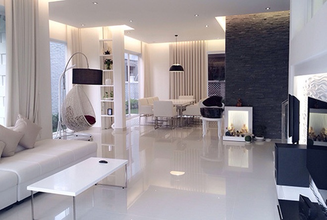 Nhà Thủy Tiên và Công Vinh chỉ mất hơn 10 phút để ra trung tâm TP.HCM nên giá đất không hề rẻ. Bên trong ngôi biệt thự trắng, Thủy Tiên và Công Vinh trang trí theo phong cách hiện đại, nội thất đơn giản nhưng vô cùng sang trọng, tinh tế. Đặc biệt, vợ chồng nam cầu thủ còn dành 1 không gian siêu rộng để làm vườn rau và khu vui chơi cho con gái.
