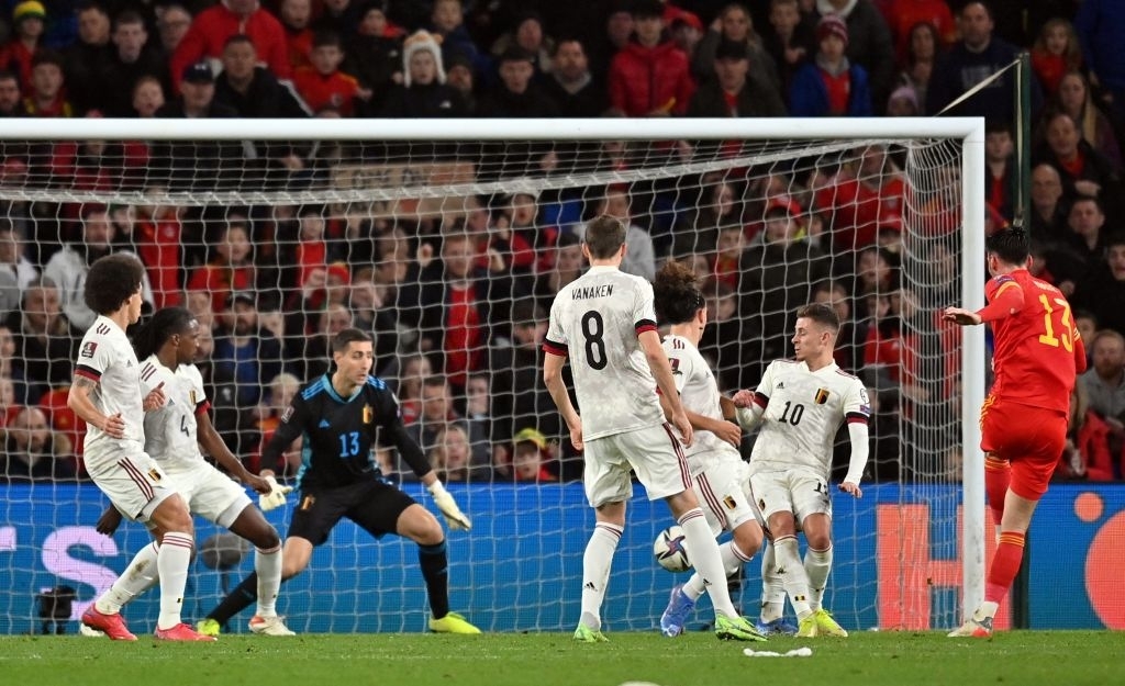 Daniel James treo bóng đến đúng vị trí của Kieffer Moore trong tình huống các hậu vệ Bỉ có hàng loạt pha phá bóng lỗi. Số 13 của Xứ Wales nhanh chóng chớp thời cơ bằng cú sút tung lưới Casteels.
