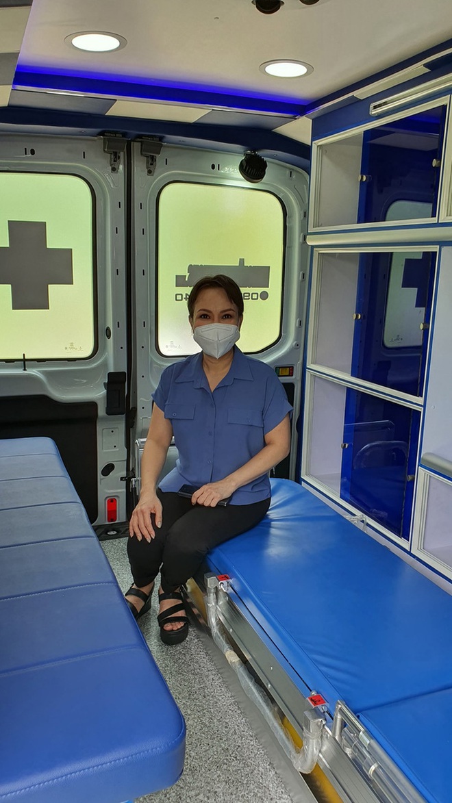 Ngoài tài trợ nhu yếu phẩm, vợ chồng Việt Hương còn chi vài tỷ mua xe cứu thương để phục vụ miễn phí cho bà con