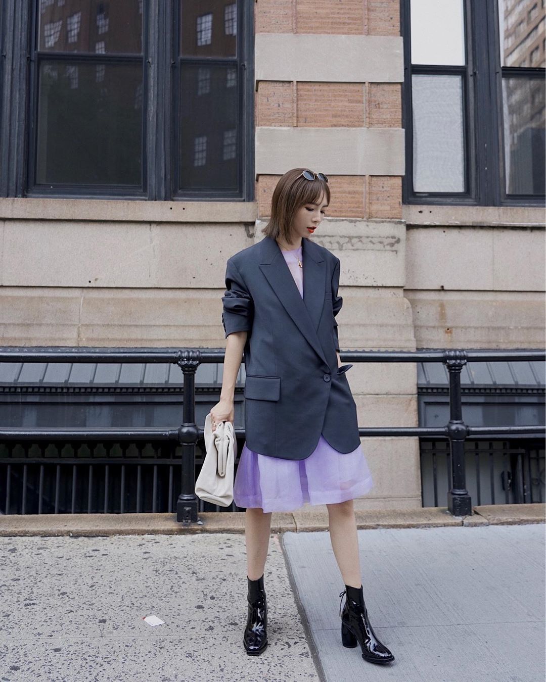Đây chính xác là tin mừng cho hội chị em thích "đu" trend. Tím mộng mơ là một trong những gam màu hot hit của năm 2019 và cho đến hiện tại vẫn chưa hề có dấu hiệu hạ nhiệt. Gam màu tím nữ tính, thơ mộng và nếu mix&match khéo léo, vẻ ngoài của bạn còn rất tây tây, chanh sả nữa.