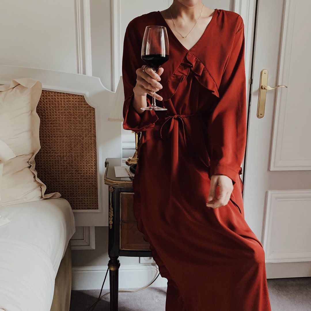 Hồng và đỏ đậm là những màu trang phục hết sức nữ tính. Hai gam màu này không chỉ giúp chủ nhân nổi bật trong bối cảnh thực tế, mà còn tạo hiệu ứng cho những bức hình sống ảo thêm ấn tượng, sắc nét. Xét riêng đến màu đỏ đậm, trang phục mang gam màu này còn mang đến cho người diện vẻ ngoài cực kỳ sang trọng, quyến rũ.