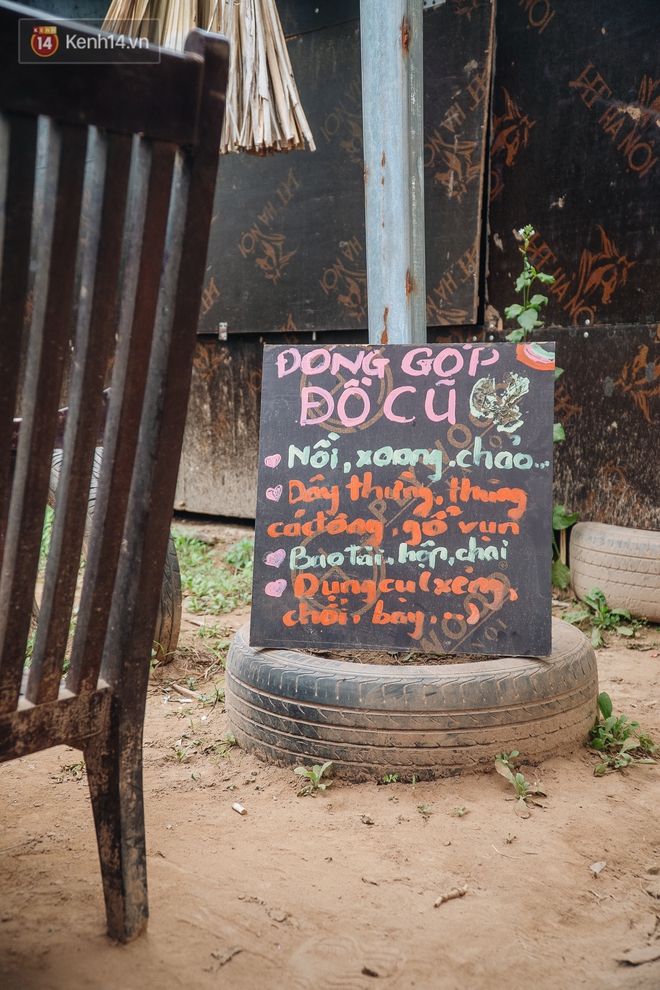 Để duy trì thư viện và sân chơi, ông Được kêu gọi đóng góp đồ cũ như nồi, niêu, xoong, chảo, gỗ vụn,...