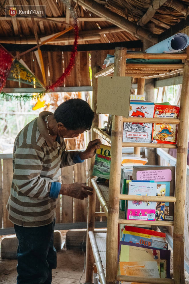 Trong căn lán nhỏ, ánh đèn leo lét, tiếng ê a của lũ trẻ văng vẳng mỗi cuối tuần. Ông Được tích tiền, mở thêm một thư viện sách miễn phí cho chúng. Mỗi lúc rảnh, ông tranh thủ đi thu gom sách truyện cũ, khoảng 5.000 - 6.000 đồng/cân, hoặc ai có thì xin. Từ một vài cuốn sách dần dần lên tới cả trăm cuốn, được xếp ngay ngắn, gọn gàng và phân loại thành nhiều nhóm khác nhau với dòng ghi chú cẩn thận: sách lịch sử, truyện tranh, sách khoa học, tập vở...