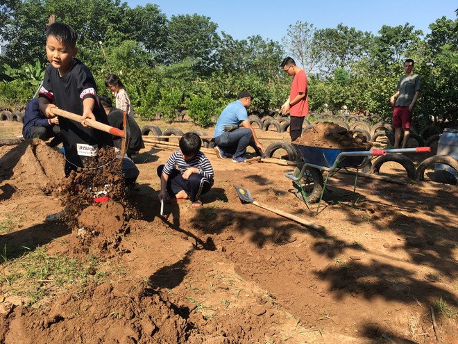 Các em nhỏ được bố mẹ, thầy cô, đưa đến sân chơi phiêu lưu của ông Được vào những ngày cuối tuần (Ảnh: NVCC)