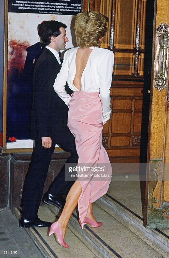 Công nương Diana luôn biết cách tận dụng từng chi tiết trang phục để tạo nên những cuộc "cách mạng" thời trang khiến cả thế giới phải kinh ngạc. Bộ đầm nhung khoét lưng sâu hiểm hóc của nhà mốt Catherine Walker đã được nhấn nhá thêm chuỗi vòng ngọc trai đeo ngược, hình ảnh của bà gây ấn tượng mạnh mẽ trong mọi góc độ khiến người ngắm bất giác lãng quên thiết kế phía trước mà chỉ đắm chìm trong sự quyến rũ của tấm lưng đầy mê hoặc này.
