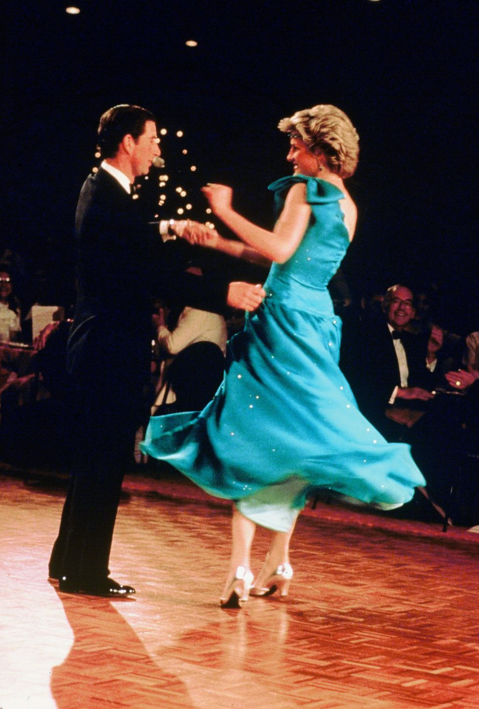 Công nương Diana nổi tiếng là người thích khiêu vũ và rất nhiều sự kiện bà từng thể hiện tình cảm với Thái tử Charles qua những động tác khiêu vũ uyển chuyển. Và công chúng còn nhớ mãi Công nương Diana vô cùng xinh đẹp, kiều diễm trong bộ đầm xanh ngọc kết hợp cùng chiếc băng đô có 1 - 0 - 2 khiêu vũ với chồng tại chuyến công du năm 1983.