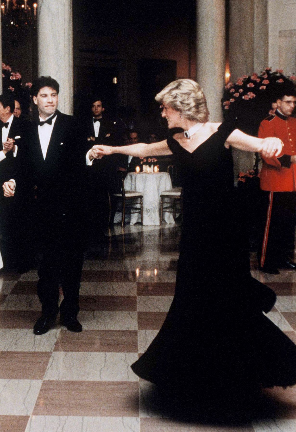 Cả thế giới từng bất ngờ bởi bức ảnh Công nương Diana khiêu vũ với nam tài tử John Travolta tại Nhà trắng. Khi ấy, Công nương Diana mặc đầm nhung của nhà thiết kế Victor Edelstein. Với những khoảnh khắc tuyệt đẹp trong màn khiêu vũ ấn tượng trên, bộ đầm nhung mà Công nương Diana mặc đã giúp bà trở thành biểu tượng thời trang thế giới.