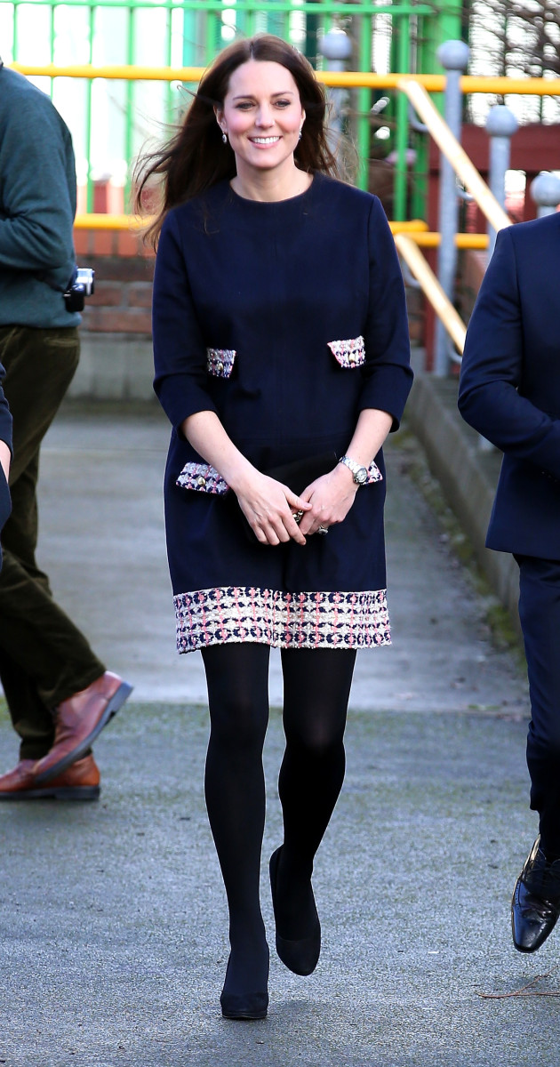 Công nương Kate Middleton có gu nhất định khi chọn quần tất đen. Sở thích của cô chính là mặc những mẫu quần tất dày dặn, tạo một lớp phủ "đen kìn kịt" lên cặp chân.