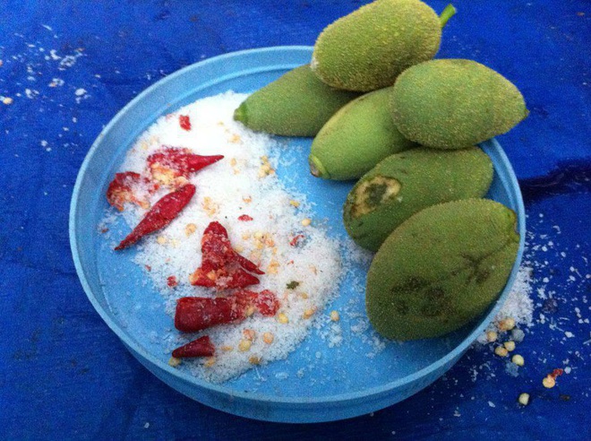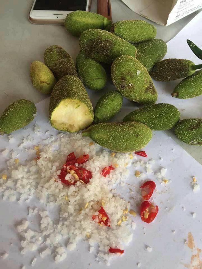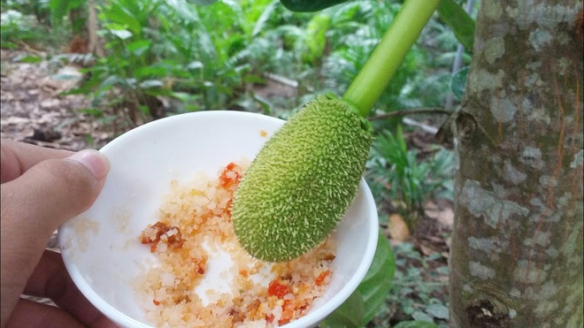 Nếu sinh ra và lớn lên ở miền quê, hẳn bạn sẽ biết đến món ăn "độc nhất vô nhị" này. Mít non còn thường được gọi là "dái mít", là phần quả bé xíu trên thân cây khi vừa mọc ra. Món ăn này khiến nhiều người không khỏi xuyến xao nhớ lại thời tuổi thơ cùng rủ nhau đi hái "dái mít" rồi chấm ăn cùng chén muối ớt làm vội. Vị chua chua, chát chát và cay xè của món này mãi chẳng bao giờ quên được!