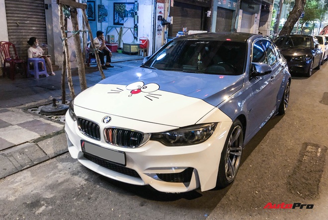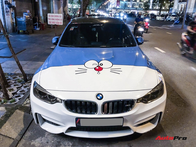 Cụ thể, chiếc BMW M3 này có màu sơn gốc là xanh dương Yas Marina Blue. Sau đó, dường như chủ nhân của chiếc xe này khá yêu thích nhân vật truyện tranh Doraemon nên đã quyết định dán phần đầu xe xe bằng decal màu trắng cùng cặp mắt, mũi của nhân vật này trên nắp capo, mô phỏng lại đúng hình tượng của nhân vật mèo máy Nhật Bản.