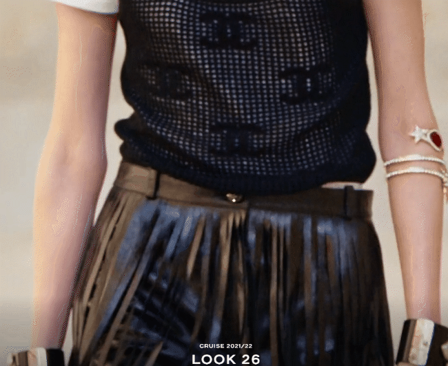 Bộ cánh mà Châu Tân mặc chính là look thứ 26 trong BST Cruise 21/22 của Chanel.