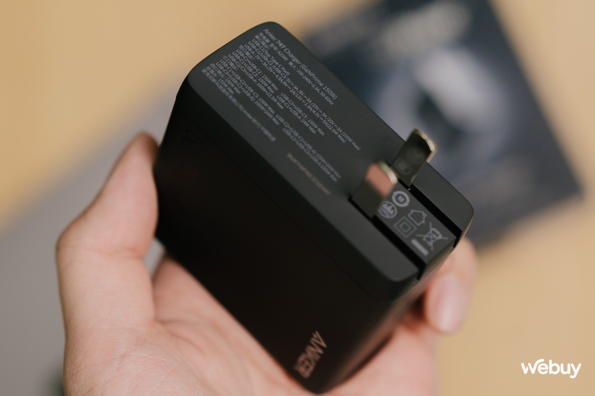 Do là phiên bản dành cho thị trường Trung Quốc nên củ sạc Anker GaNPrime 150W này sử dụng chân dẹt dạng gập linh hoạt, vừa giúp giảm kích thước củ sạc vừa tiện lợi trong quá trình sử dụng