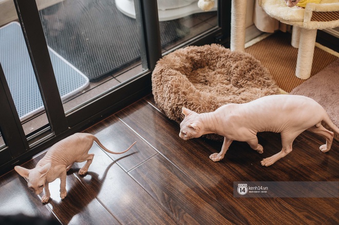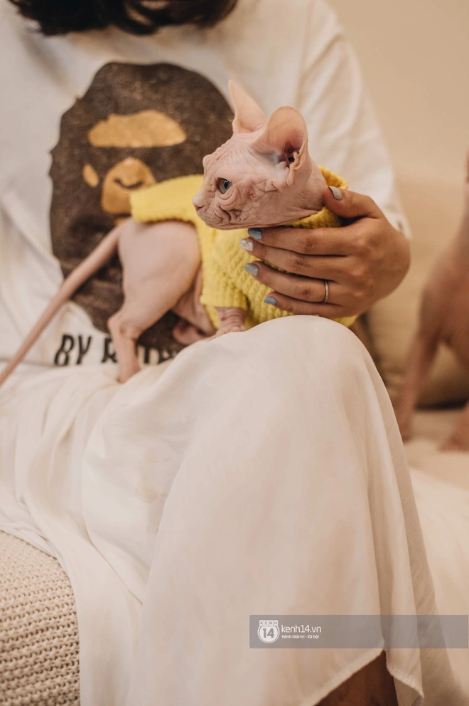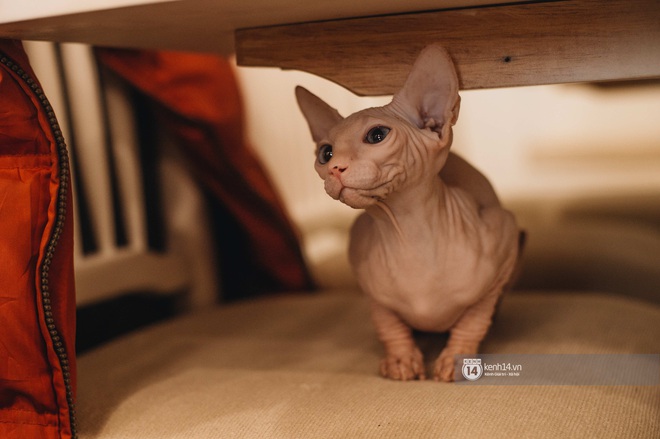 “Ôi trời ơi!” đi kèm một cái giật bắn mình là phản ứng đầu tiên của tôi khi đến gặp đàn mèo Sphynx nhà Hải Đăng - Quỳnh Anh. Bởi lẽ cánh cửa chung cư vừa được mở ra thì vèo, một sinh vật trụi lủi phóng vọt từ trong nhà chạy ra sảnh chung cư và ngồi chồm hỗm ở đó.
