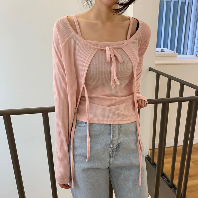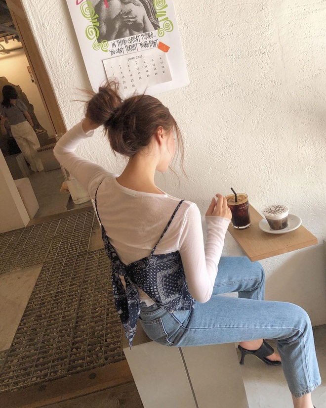 Một trong những kiểu áo đang gây sốt Instagram chắc chắn là áo buộc dây trước sexy, táo bạo. Tất nhiên, bạn có nhiều cách để "cân" item này, tùy thuộc vào gu mix & match từng người nữa. Nếu bạn là cô gái "chịu chơi" thì cứ áp dụng áo bra bên trong áo buộc dây bên ngoài, bằng không thì cứ an toàn như gái Hàn layer áo hai dây cho kín kẽ hơn càng tốt.