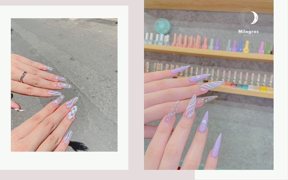 Tại Milagros bạn sẽ bị choáng ngợp bởi độ nổi bật của các mẫu đính đá đẹp mê ly. Hoặc những mẫu nail xinh nhẹ nhàng, 3D, sơn mờ, sơn nhũ, bling bling, họa tiết lấp lánh. Ngoài ra, tiệm còn rất nhiều mẫu theo phong cách hiện đại, bắt trend hot nhất. Từ những màu sơn nhẹ nhàng hay nổi bật nhấn nhá thêm phụ kiện charm Hàn, đá, xà cừ, nhũ thủy tinh,... mang đến vẻ đẹp kiêu sa, sang trọng cho đôi bàn tay ngọc ngà của bạn. Không chỉ cung cấp dịch vụ nail mà Milagros còn có cả dịch vụ làm mi. Từ "móng xinh" cho đến "mi xịn" Milagros Beauty Room đều có thể cân tất.