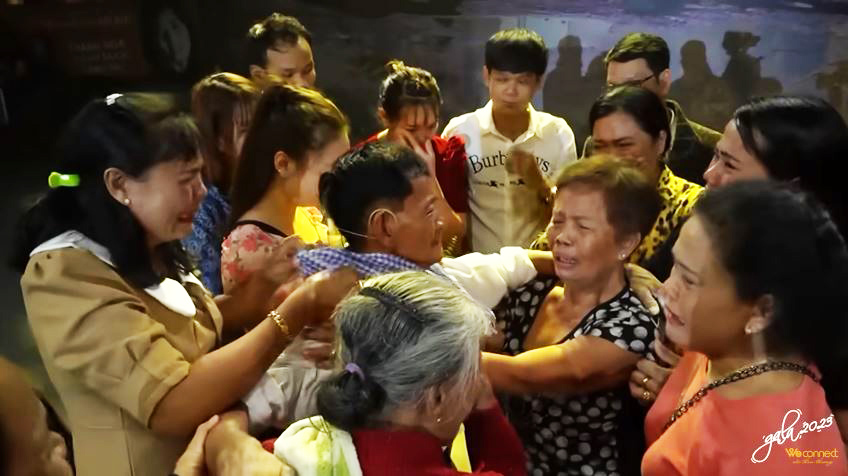 Cả gia đình tụ về Long Xuyên, cách nhau khoảng 2km, nhưng lạc nhau vài chục năm mới được đoàn tụ, khi tuổi đã gần cạn. Gặp nhau tại sân khấu Như chưa hề có cuộc chia ly, vừa chạm mặt ông Thon đã ôm chầm lấy chị, nước mắt chứa chan. Ông hỏi dồn dập: “Anh đâu? Còn anh kia đi đâu rồi chị ơi? Sao chị không kiếm em? Sao chỉ có mình em à, còn anh đâu rồi?”. Ông khóc òa như đứa trẻ, bao ấm ức, hờn tủi tuôn ra.