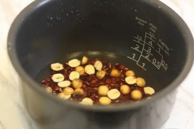 Bước 1: Hạt sen tươi bạn mua về đem lấy bỏ tâm rồi rửa sạch. Đậu đỏ bạn ngâm khoảng 1-2 tiếng cho mềm. Sau đó cho hạt sen và đậu đỏ vào nồi cơm điện, nấu chín.