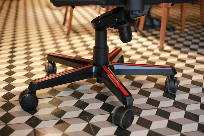 Chân full kim loại trang trí cùng tone màu với ghế, trụ class 4 siêu bền. Bánh xe của DXRacer G Series là bánh xe đôi làm bằng PU, chống ồn cực tốt.
