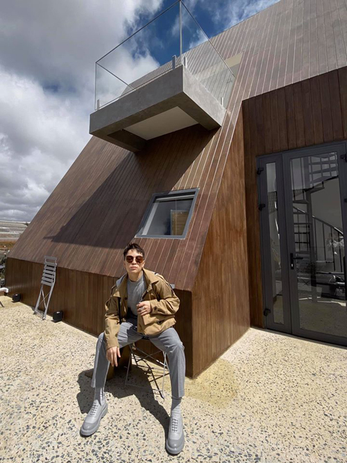 Theo những hình ảnh mà Kelbin Lei đăng tải, có thể thấy phần lớn chi tiết bên ngoài căn biệt thự được ốp gỗ phối hợp với kính cường lực, vừa hiện đại, vừa sang trọng với hàng chục góc sống ảo chất lừ.