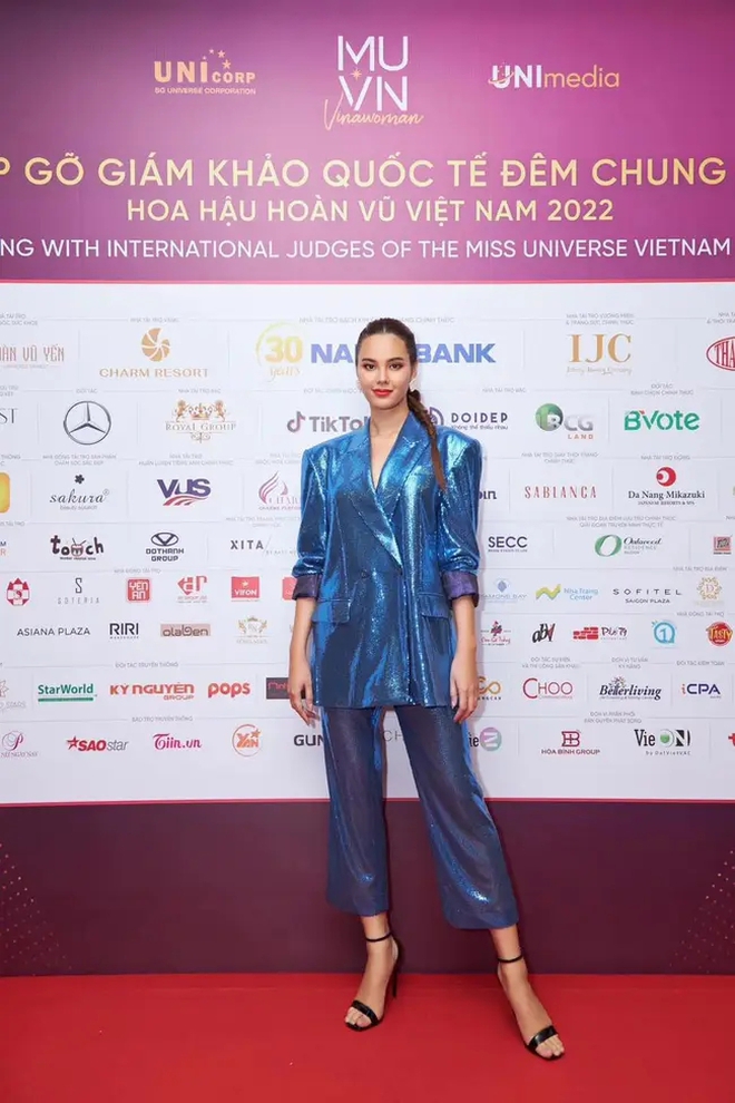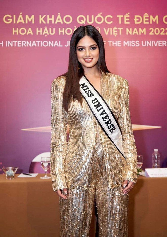 Mẫu suit ánh kim của Harnaaz Sandhu cũng không khá hơn là bao khi chẳng những không tôn dáng, mà còn làm lộ nhược điểm hình thể Hoa hậu. Thậm chí, netizen nhận ra rằng chiếc áo quá nhỏ so với cơ thể Harnaaz Sandhu