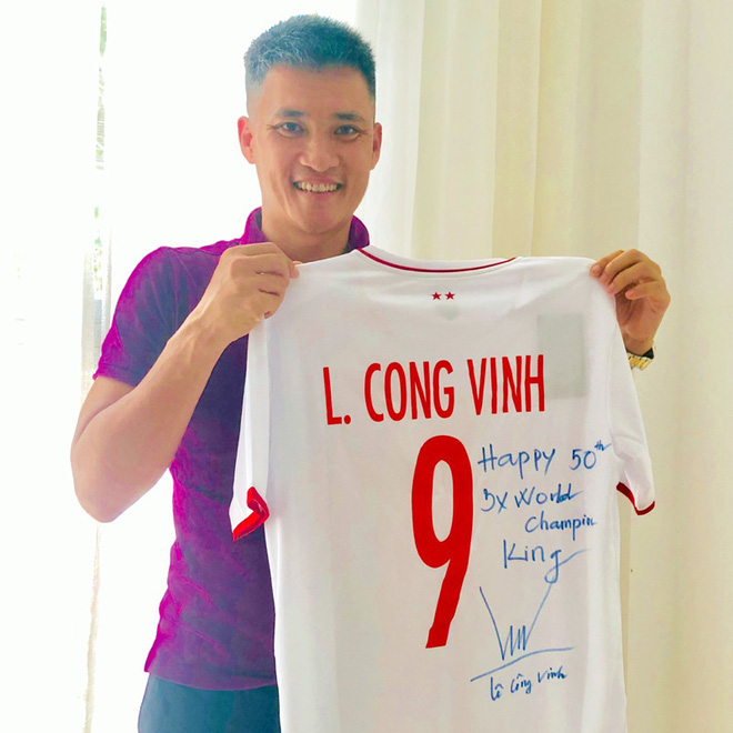 Hai huyền thoại bóng đá Việt Nam là Huỳnh Đức và Công Vinh được lựa chọn để gửi món quà của mình tới "Vua bóng đá". Hai chiếc áo có chữ ký này có thể sẽ được bán đấu giá với mục đích từ thiện.
