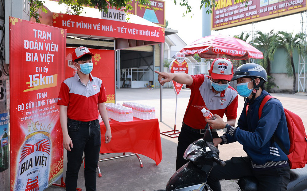 Giữa những mệt mỏi của chuyến đi dài, anh Bình và mọi người trong đoàn lại khấp khởi vui mừng nhận được những hỗ trợ rất kịp thời và nhân văn trên dọc dài chuyến đi. Anh Bình chia sẻ thêm: "Nhóm đã lên kế hoạch về quê chung với nhau từ đầu tháng 1, sau đó lại biết thêm được Bia Việt, một nhãn hiệu bia mới của Heineken có các hoạt động Trạm Đoàn Viên qua một hội nhóm đồng hương trên mạng xã hội, tôi và mọi người đã rất phấn khởi vui mừng, bởi Trạm Đoàn Viên Bia Việt tình cờ nằm trong lộ trình chúng tôi đi. Với sự hỗ trợ của Bia Việt như phát nước uống, khăn giấy miễn phí, phiếu ăn miễn phí, cung cấp dịch vụ sửa xe, đổ xăng miễn phí… Sự chu đáo này đã khích lệ anh em chúng tôi rất nhiều, bởi trong và sau dịch bệnh, vẫn còn rất nhiều tấm lòng, doanh nghiệp nghĩ đến người dân xa quê như chúng tôi. Thật sự điều này rất quý báu!"