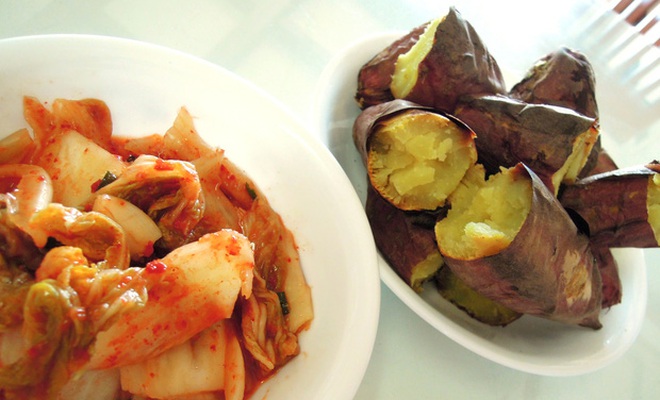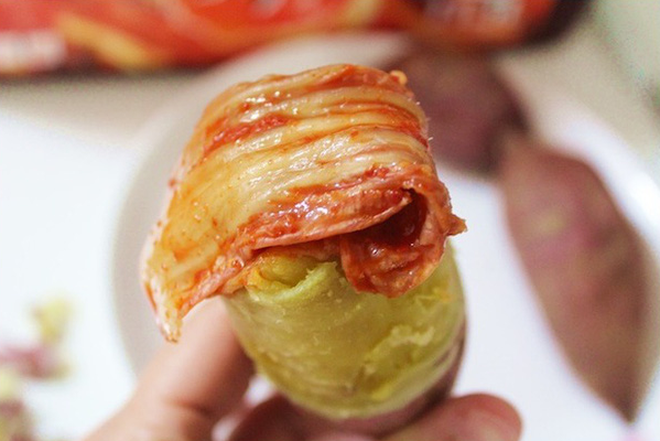 Vốn dĩ đây cũng là sự kết hợp món ăn được yêu thích từ lâu của người Hàn. Vào mùa lạnh, họ thường thích thưởng thức những củ khoai lang nướng nóng hổi kèm với kim chi cải thảo hoặc bắp cải. Ngoài ra, thành viên nhóm NCT cũng gợi ý rằng ăn nó cùng kim chi củ cải cũng ngon không kém.