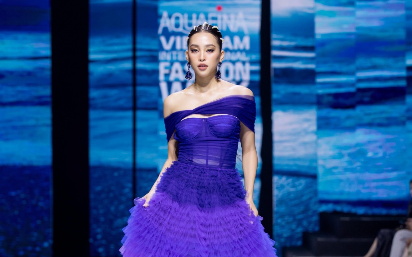 Với thiết kế trong bộ sưu tập Song of the sea của thương hiệu 21SIX, Hoa hậu Tiểu Vy một lần nữa cho thấy vị trí của một Nữ Hoàng với bản lĩnh và phong thái của một vedette làm chủ sàn diễn.