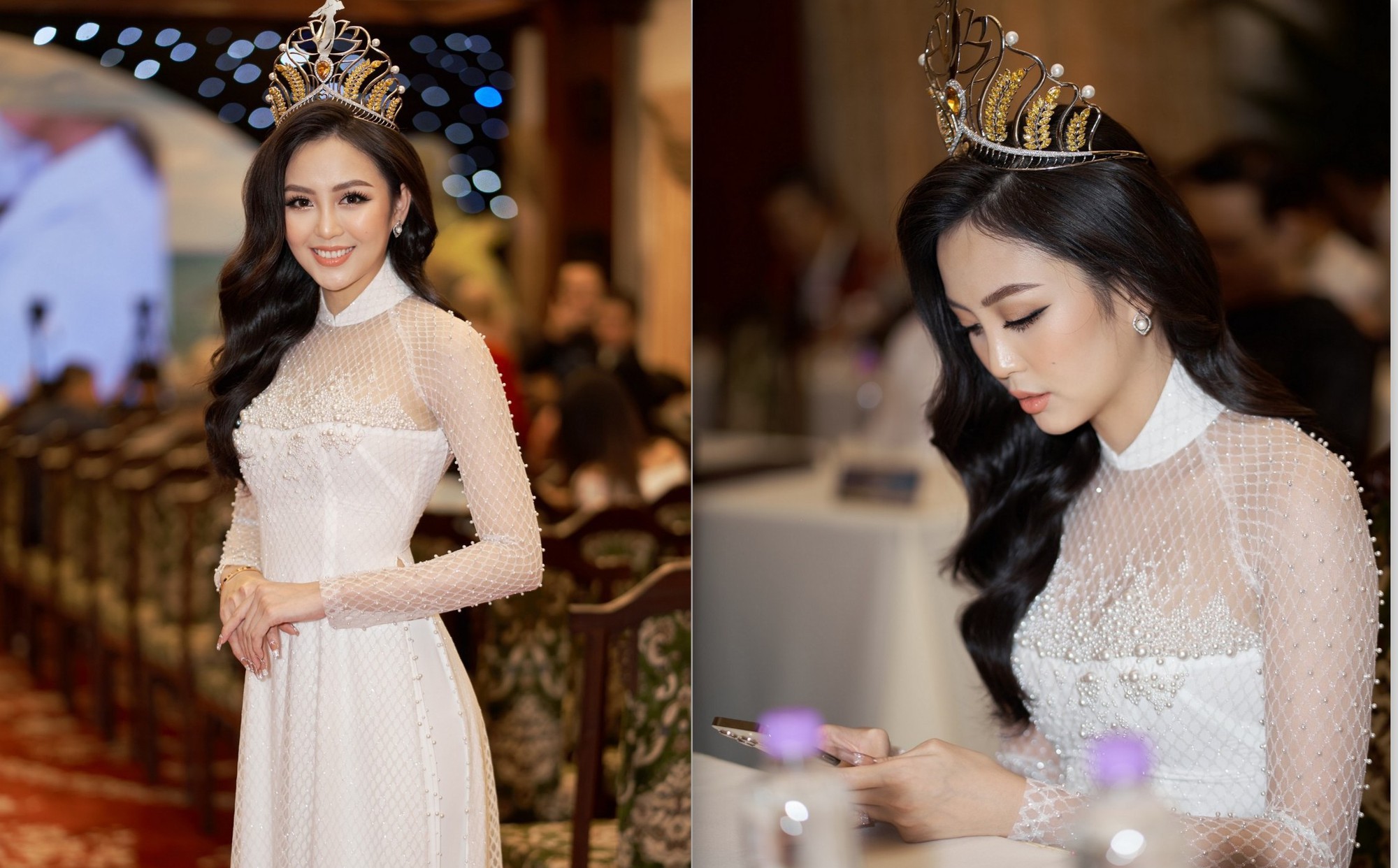 Hoa khôi Hải Yến xuất hiện xinh đẹp với áo dài trắng tại sự kiện