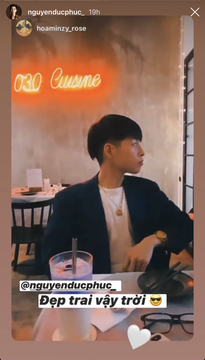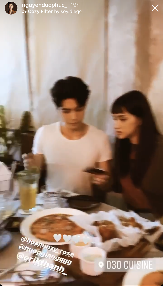 Đáng chú ý, trong một story mà Erik đăng tải, Hoà Minzy còn không ngớt lời khen ngợi sự đẹp trai của ông chủ Huy Trần.