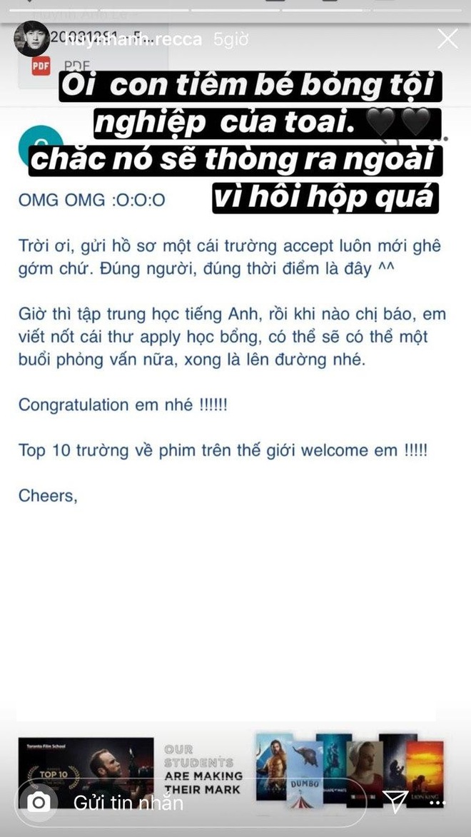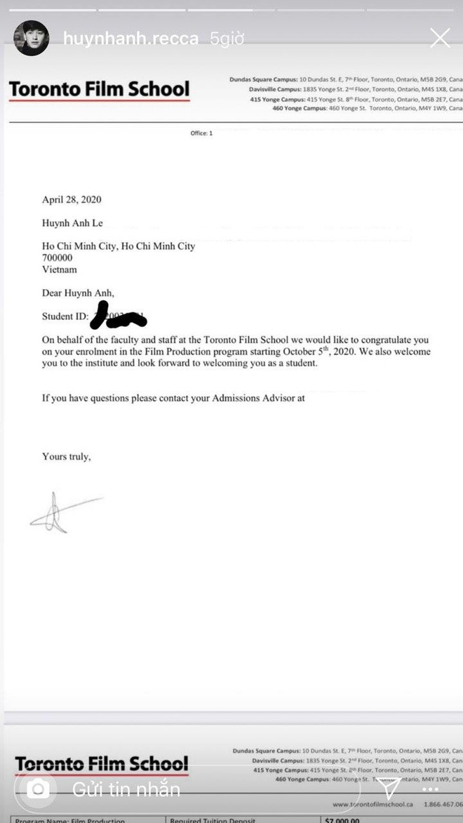 Mới đây nhất, Huỳnh Anh hào hứng khoe trúng tuyển một trong những trường về làm phim hàng đầu tại Canada. Theo lịch, anh sẽ phải có mặt tại đây để nhập học vào đầu tháng 10/2020. Nhiều người lo ngại rằng khoảng cách địa lý liệu sẽ cản trở mối quan hệ chớm nở của Huỳnh Anh và Hồng Quế. Nhưng nếu cả hai thực sự quan tâm, chia sẻ với nhau thì đây chắc chẳng là vấn đề to tát, biết bao cặp đôi yêu xa vẫn hạnh phúc và có cái kết đẹp đấy thôi!