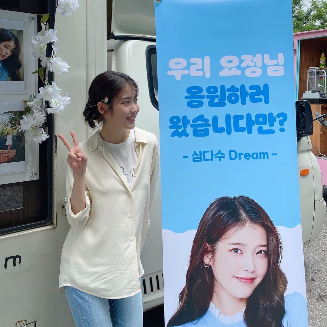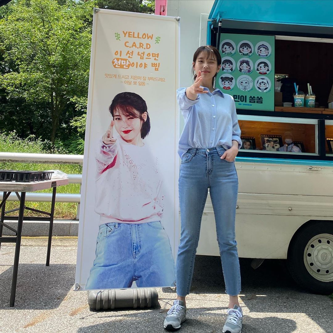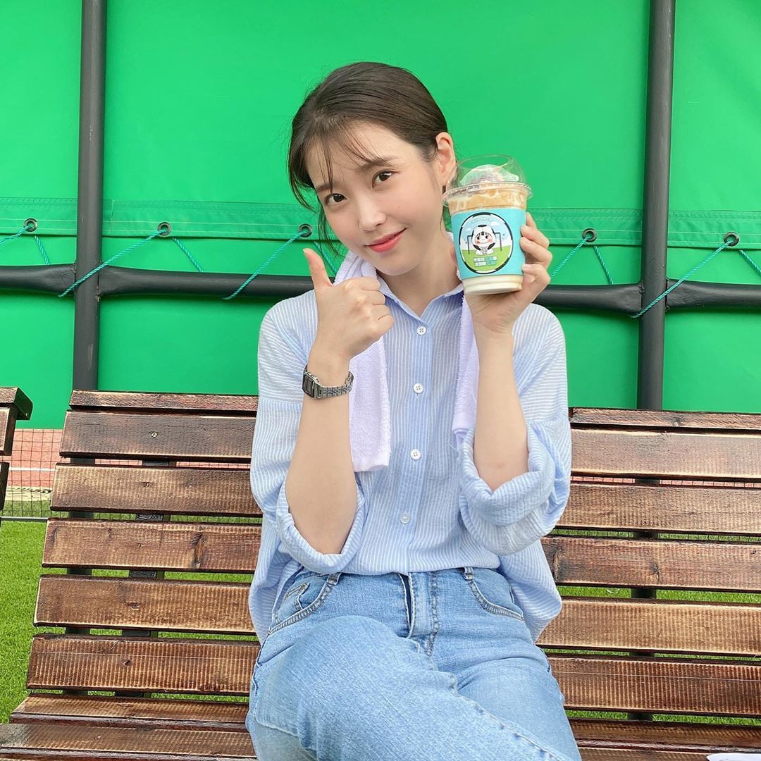 Áo sơ mi kẻ sọc, màu xanh nhạt là một item hết sức cơ bản, ai cũng mặc đẹp. Và khi lên đồ với kiểu áo này, IU đã mix với quần jeans xanh sáng, sơ vin gọn gàng để tạo vẻ chỉn chu, thanh lịch mà vẫn sành điệu. Thêm nữa, set đồ này cũng có khả năng tôn dáng rất tốt, phù hợp với những nàng thấp bé.