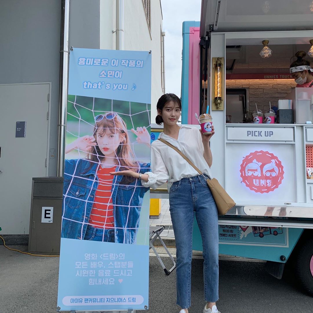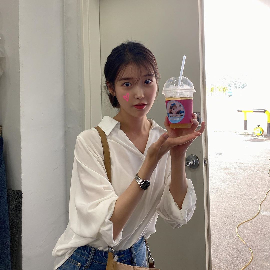 Lần này, IU biến tấu chiếc áo sơ mi thành áo khoác ngoài t-shirt trắng. Sự thay đổi này đã tạo vẻ phóng khoáng, bụi bặm cho set đồ. Và khi chọn những items toàn mang gam màu nhã nhặn như trắng và be, vẻ ngoài sẽ còn ăn đậm điểm trang nhã, thanh lịch.