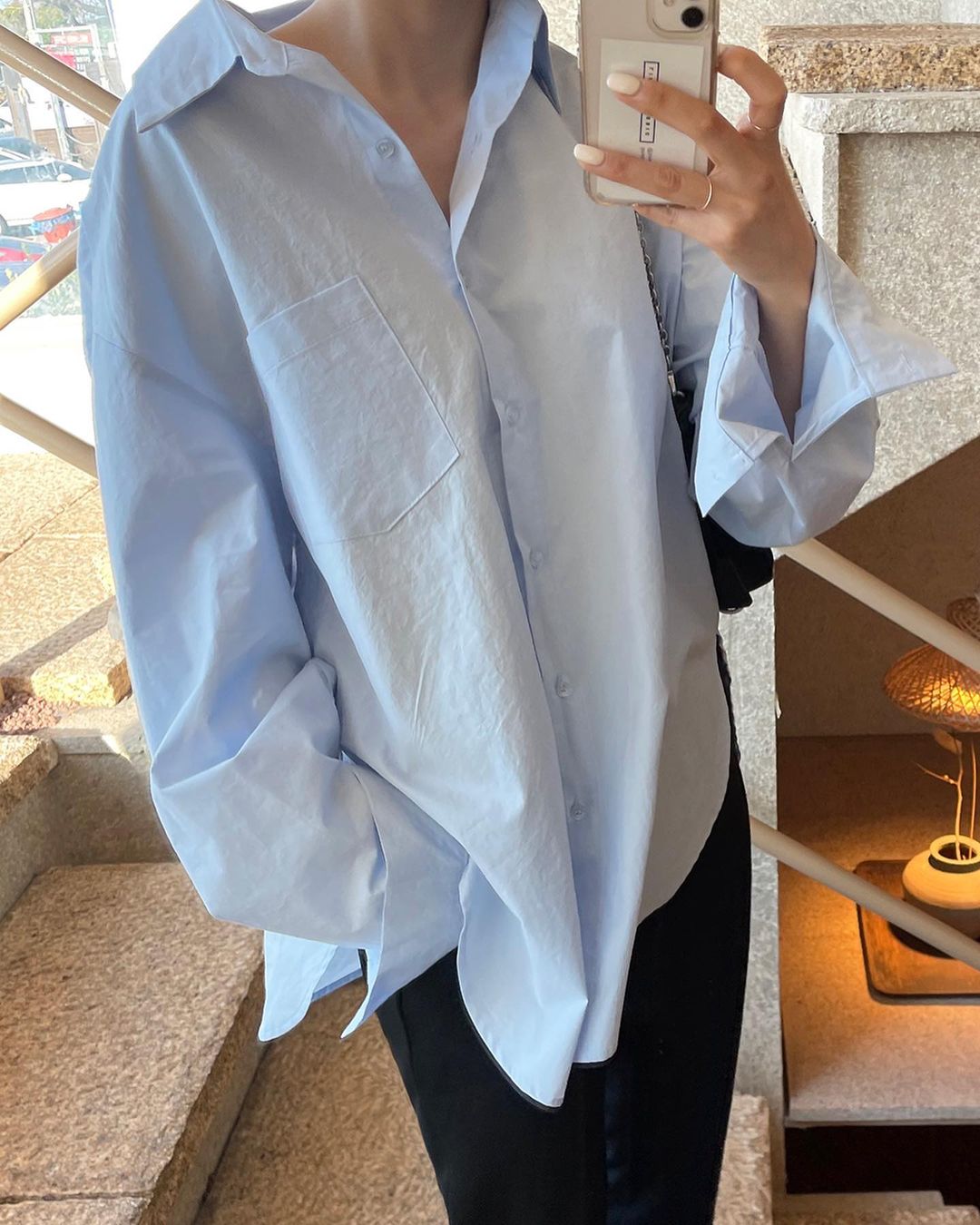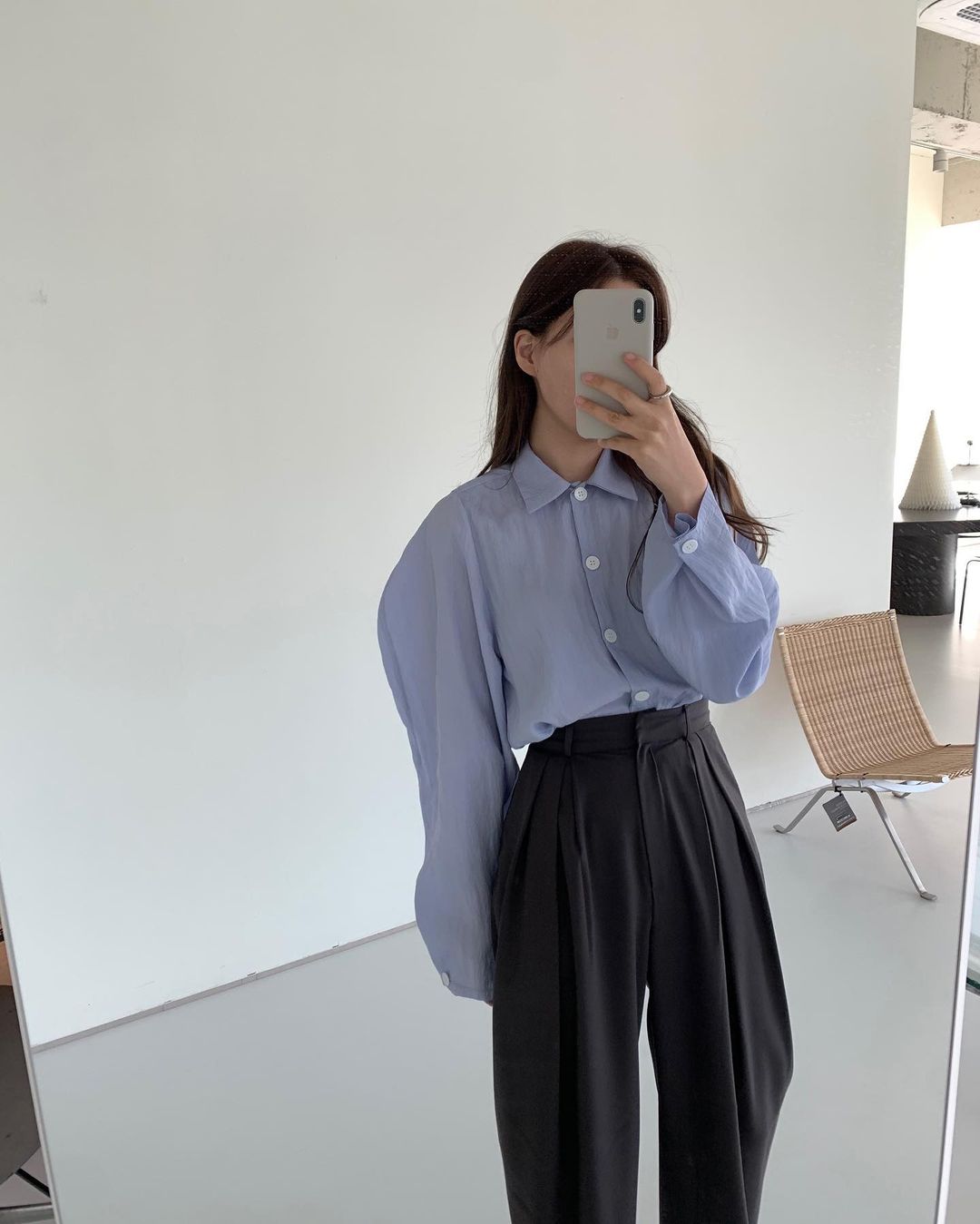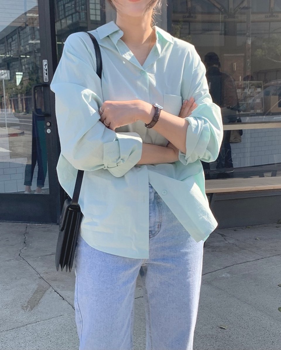 Không để các chị em phải tò mò thêm, kiểu áo sơ mi được gái Hàn diện nhiều top đầu ở thời điểm hiện tại chính là những chiếc áo sơ mi trơn màu pastel. Bản thân mẫu áo này cũng có rất nhiều phiên bản, từ hồng pastel, xanh lá pastel, xanh da trời hay tím pastel chuẩn trend… Và riêng việc rinh về cho cả tủ đồ mùa Hè toàn là áo sơ mi màu pastel cũng có thể đảm bảo, chị em sẽ mặc đẹp và đa dạng nguyên mùa.