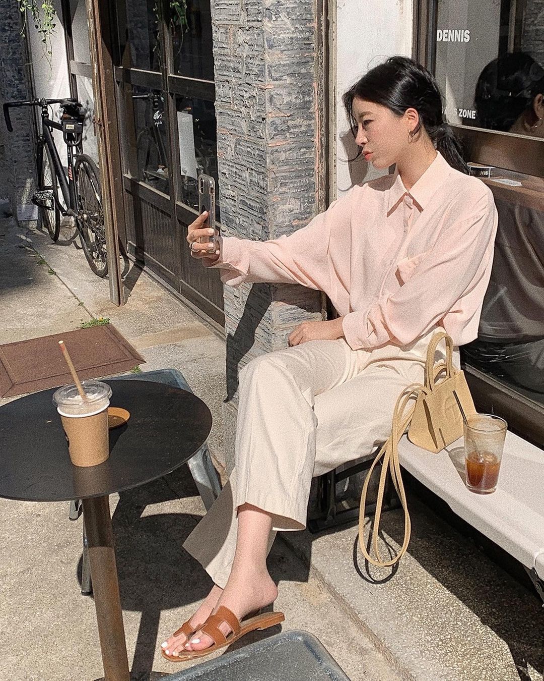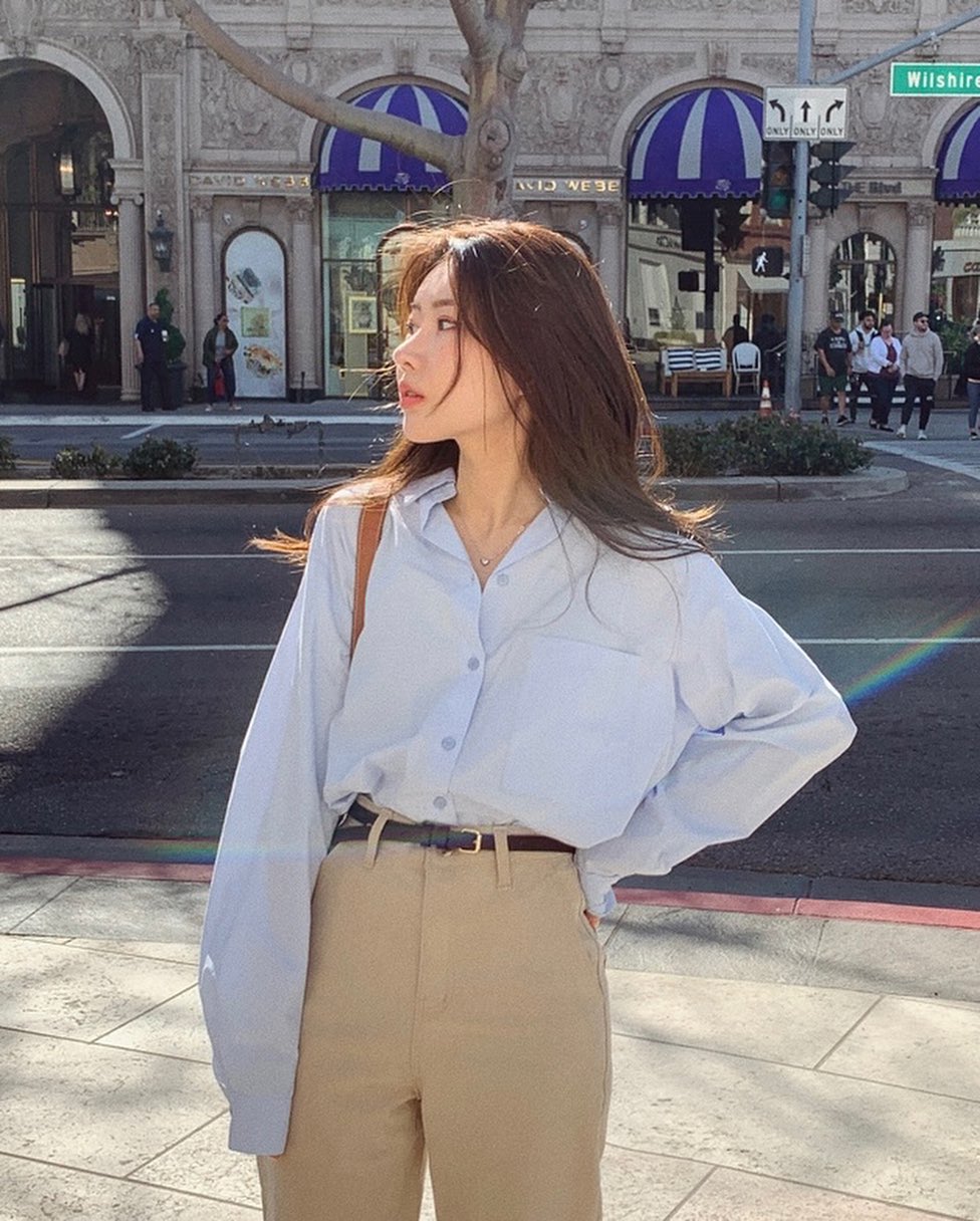 Mổ xẻ thêm về cách diện áo sơ mi pastel của gái Hàn thì thay vì mix đồ lồng lộn, các quý cô xứ kim chi sẽ bắt cặp áo sơ mi pastel với quần jeans xanh, jeans trắng, quần âu đen, trắng hay màu be và tinh giản hết cỡ phụ kiện, túi xách hay giày dép đính kèm, nhờ vậy mà họ có được bộ đồ luôn xịn đẹp và thanh lịch. Chị em khi sắm sửa áo sơ mi màu pastel thì chỉ cần diện theo cách đơn giản như gái Hàn thì phong cách mùa Hè sẽ được nâng tầm đáng kể.
