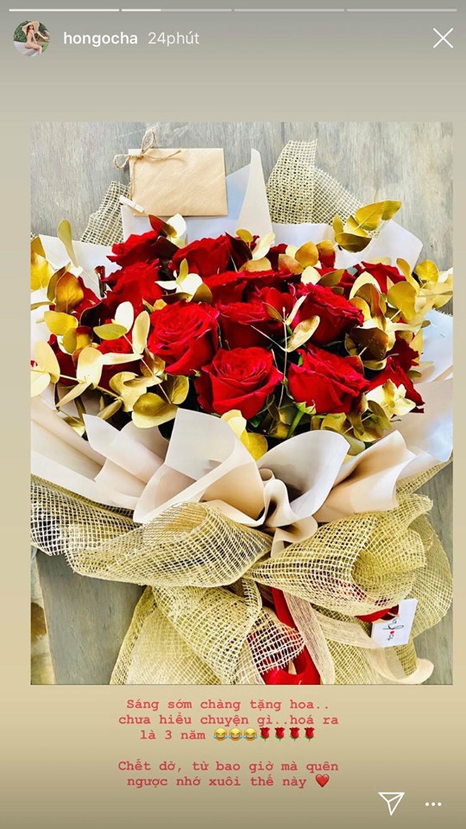 Anh còn chuẩn bị hoa cho người yêu trong ngày đặc biệt. Hồ Ngọc Hà hạnh phúc khoe lên Instagram