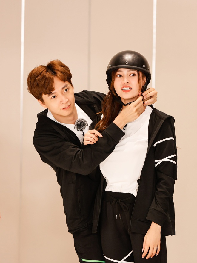 Ngô Kiến Huy ngay lập tức ra hiệu cho nữ diễn viên lùi đứng sau tránh hớ hênh. Hành động ga lăng này của "Thỏ Đen" Running Man nhận được "bão" lời khen từ dân mạng
