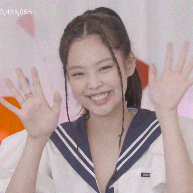 Trong buổi livestream, Jennie xuất hiện với kiểu tóc "râu gián" cùng nụ cười tươi tít mắt