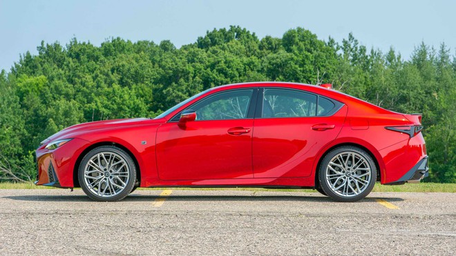 Trong khi đó, phần hông concept mang đậm chất Lexus IS mà ta có thể quan sát kỹ hơn trong ảnh dưới với khác biệt rõ nhất chỉ tới từ phần mũi xe gập xuống như nhắc tới phía trên cùng với đó là hốc gió phía sau bánh trước trên concept điện. Thậm chí có thể thấy phần đèn hậu 2 xe cũng có dạng chữ Y giống nhau.