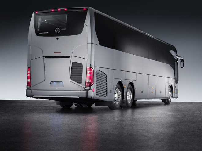 Cụ thể, mẫu Mercedes Tourrider này là sản phẩm dành riêng cho thị trường Bắc Mỹ, nhắm tới các dịch vụ di chuyển hạng nhất. Với 14 mét chiều dài, chiếc xe buýt khoảng 50 chỗ này mang tới không gian nội thất rộng rãi và thoải mái.