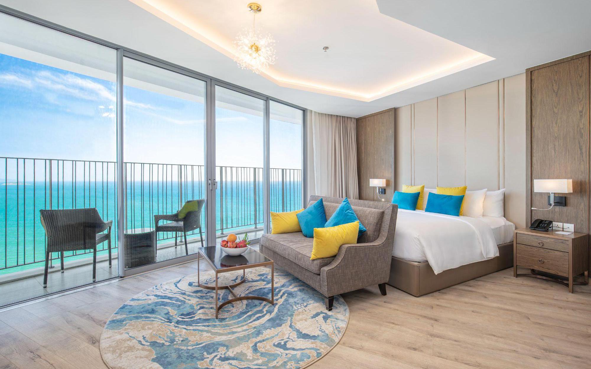 Với những căn phòng hướng biển, bạn thức giấc trong tiếng sóng biển rì rào, khởi đầu một ngày mới với biển xanh mênh mông bát ngát.