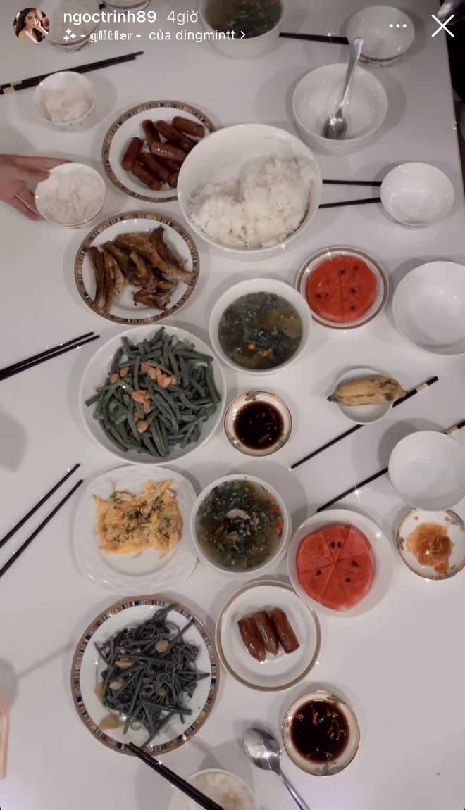 Thế nhưng trái với suy nghĩ của nhiều người là Ngọc Trinh sẽ mời khách các món sơn hào hải vị, thực tế lại khiến người khác phải trầm trồ như thế này...