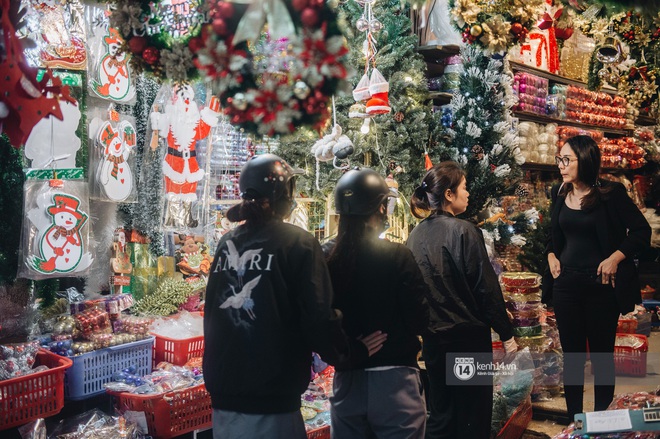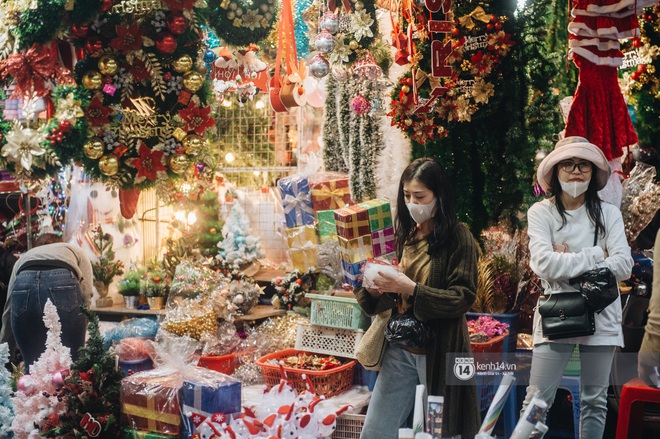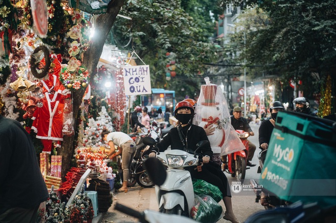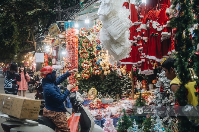Còn chưa đầy chục ngày nữa là tới Giáng sinh, không khí tại phố Hàng Mã, con phố "tổ sản" về nguyên vật liệu trang trí tại Hà Nội đang tấp nập hơn bao giờ hết. Cửa hàng nào cũng bao la là cây thông, vòng nguyệt quế, quả châu, đồ treo cùng ti tỉ các món phụ kiện trang trí, người mua kẻ bán dập dìu. Mặc dù ngày càng có nhiều shop bán cây thông và đồ trang trí rải rác ở các quận nhưng Hàng Mã vẫn là điểm đến của người người nhà nhà mỗi khi có nhu cầu mua sắm đồ trang trí Giáng sinh vì ở đây gi gỉ gì gi cái gì cũng có.