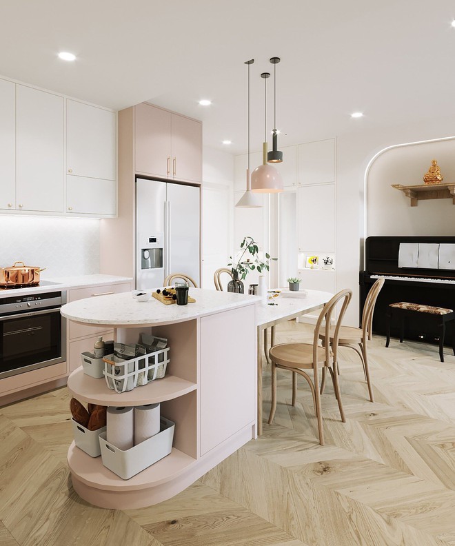 Còn đẹp là bởi vì bên thiết kế sẽ tư vấn cho mình vật liệu đẹp mắt, kích thước vẽ khớp gần như tuyệt đối với nhà, lại có bản vẽ 3D để mình nhìn như thực tế nên chọn đồ nội thất cũng dễ dàng hơn.