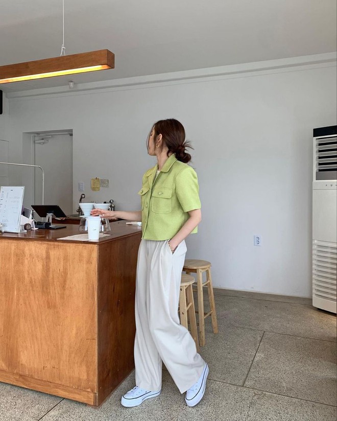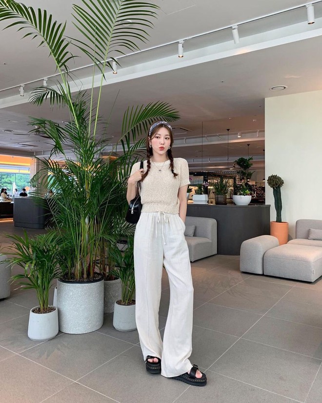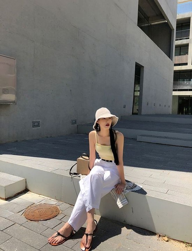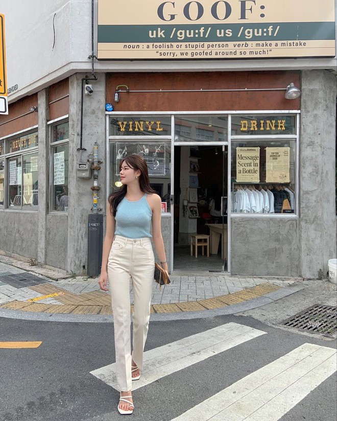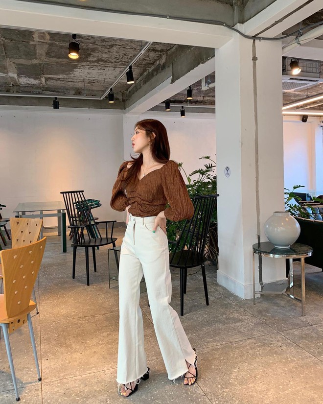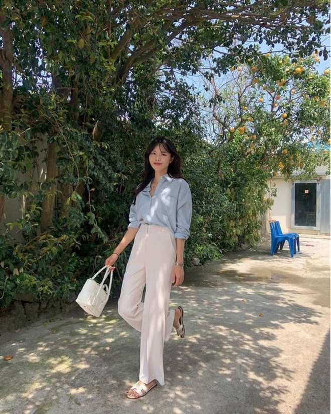 Gợi ý tiếp theo mà bạn có thể tham khảo chính là phối chiếc quần trắng với các tông màu nhẹ nhàng, mang cùng sắc thái ấm như nâu, be hay vàng. Đây là những màu sắc rất được ưa chuộng tại Hàn Quốc vì chúng tôn lên vẻ thanh lịch, tinh tế và tươi trẻ cho người mặc. Ngoài ra, các màu sắc này còn khá nhẹ nhàng và mướt mắt nên không hề gây cảm giác khó chịu hoặc quá nóng nực trong thời tiết mùa hè. Nàng có thể phối chiếc quần trắng của mình với áo sơ mi, áo phông, áo kiểu hay áo blouse mang 3 tông màu này để mỗi ngày ra đường đều là ngày mặc đẹp.